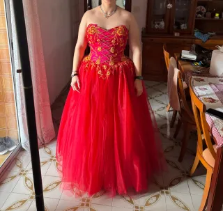 Vestido rojo y dorado elegante