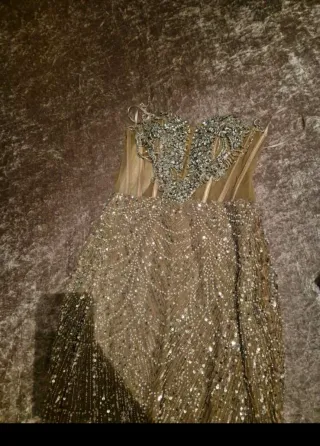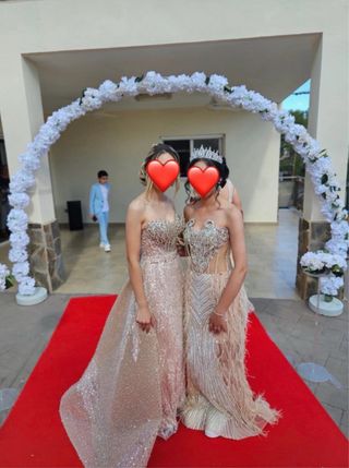 Vestido fiesta champagne y rosa todo brillante