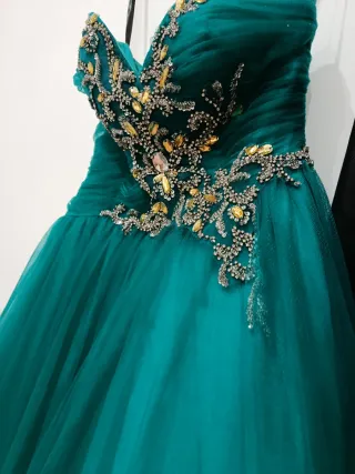 Vestido de fiesta dorado y verde
