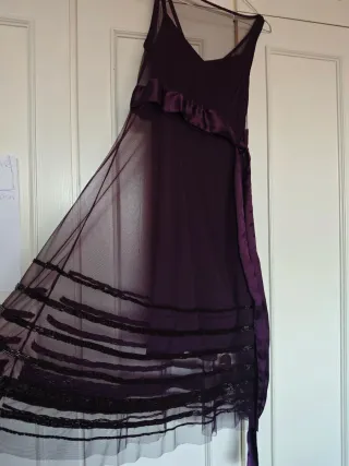 Elegante vestido sin estrenar, largo para ocasiones especiales. Su diseño vaporoso y falda con vuelo lo hacen ideal para eventos. - Tejido de tul. - Cinturón a tono.