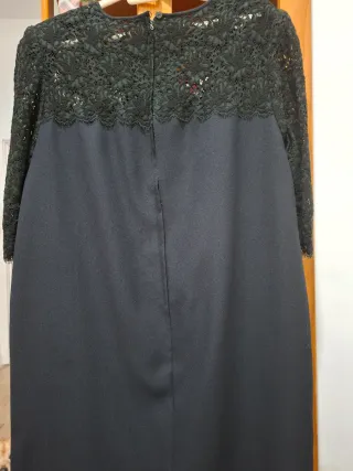 Elegante vestido negro con detalles de encaje, ideal para eventos especiales. - Cuerpo superior de encaje. - Mangas largas de encaje. - Falda lisa.
