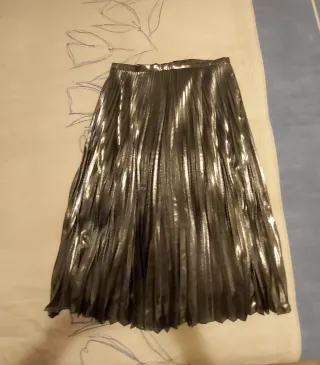 Elegante falda larga con un acabado metalizado brillante. Su diseño plisado le da un movimiento muy bonito. Ancho cintura 80cm Largo 78 - Falda larga. - Diseño plisado. - Acabado metalizado.