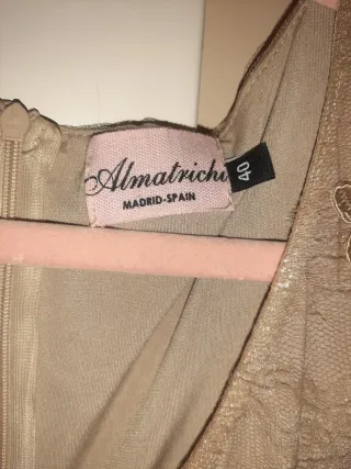Espectacular vestido de fiesta con un diseño elegante y encaje bordado con hilo dorado. - Color rosa palo - Falda con volantes de tul en capas. - Tirantes finos de tul.