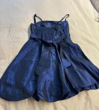 Vestido de fiesta azul con lazo