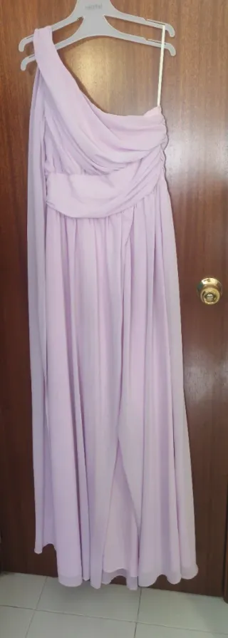 Vestido corto y elegante, muy ligero y elástico. El vuelo es muy bonito y se ajusta a tu cuerpo. Se lo puso mi madre para una boda así que está nuevo. - Diseño de un solo hombro con un tirante - Cintura fruncida con un lazo que se ajusta a lo que desees - Falda con vuelo. Una de las fotos nuestra la tela y el forro