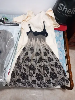 Conjunto de dos vestidos de fiesta con un diseño elegante y atemporal. Tallas S y XS. - Diseño tipo corsé con peplum. - Falda recta. - Tejido con estampado floral. - Vendo porque ya no soy esa talla
