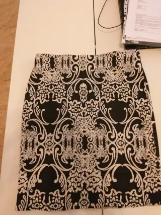 Falda de fiesta con un llamativo estampado. - Diseño en blanco y negro. - Talla L. Falda de festa por la rodilla. talla 40 pone 38 pero es una 40 #faldaporlarodilla #festa #tallaL