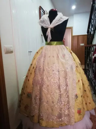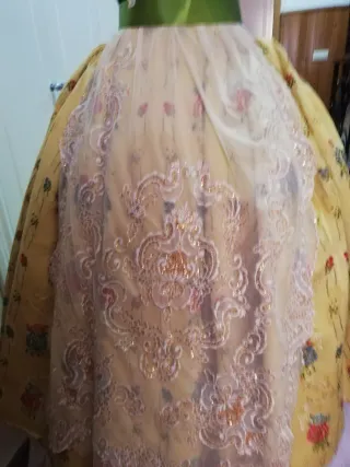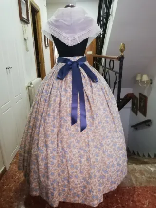 Falda de fallera para niña, ideal para fiestas y celebraciones. - Diseño tradicional con estampado floral. - Incluye manteletas a juego. - Talla S (aproximadamente para 8 años).