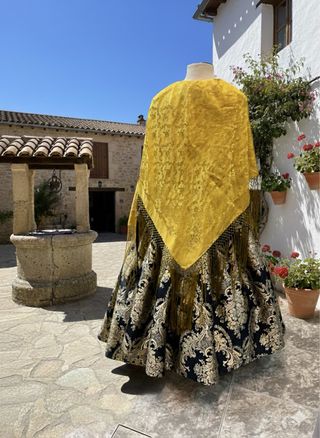 Conjunto de huertana, ideal para fiestas tradicionales. Incluye manteletas. - Manteletas de encaje blanco. - Tejido estampado floral.