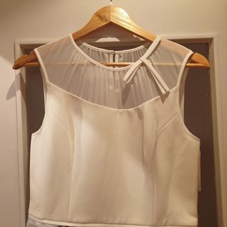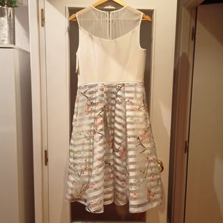 Precioso vestido de fiesta marca Ted Baker. Cuerpo blanco con gasa y falda estampada midi con triple capa. Sin estrenar. T3, talla 40. Sorprenderás en tu evento.