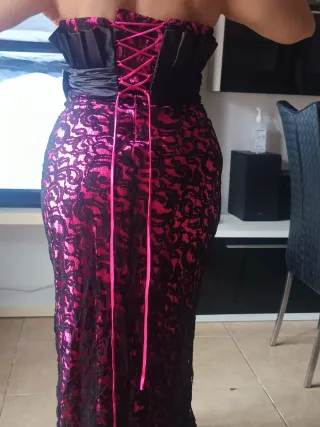 Vestido fiesta Bronda encaje negro y fucsia 40 .42