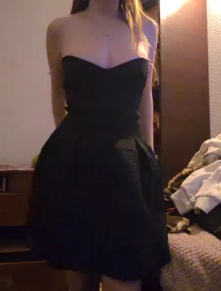 Vestido de fiesta de la marca NAF NAF. - Diseño strapless con tirantes finos. - Fajín negro con lazo decorativo. - Falda estilo globo con volumen. La talla es una 42 pero pequeña. Esta usado solo 2 veces
