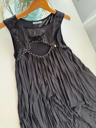 Vestido elegante para ocasiones especiales ✨ Precioso vestido ideal para fiestas o eventos, con un diseño sofisticado y muy favorecedor. La parte superior está cubierta de lentejuelas negras, mientras que la falda plisada aporta movimiento y un toque de elegancia. • Diseño elegante y distinguido. • Parte superior con lentejuelas negras. • Falda plisada de tejido suave y de gran calidad. • Detalle con brillantes y pequeña abertura en la parte superior que lo hace aún más especial. • Estado impecable, usado solo una vez. • 💰 Precio original: 150 €.