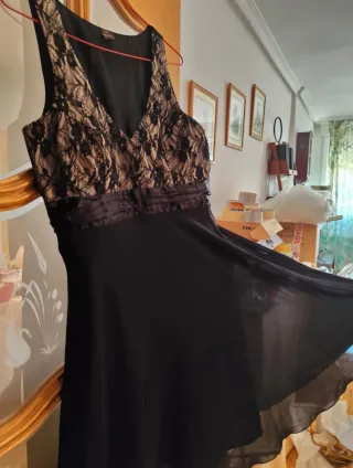 Vestido de fiesta negro y beige