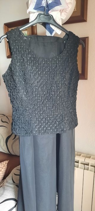 Comprado en boutique nupcial. Vestido de dos piezas. Color negro, opción de poner solo vestido, (cóctel) o poner la falda con tul.Queda muy bien. Sin estrenar, con etiqueta, vestido vitage. Excelente tejidos, mejor ver. Talla italiana 44 pero es para una persona que lleve 40/42. Tiene un anexo de 3 flores azules que se pueden quitar. 55 euros.