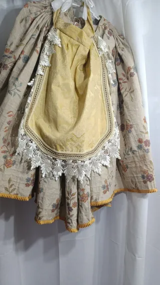 Falda de fallera para niña, ideal para fiestas y celebraciones. - Diseño tradicional con estampado floral. - Incluye manteletas a juego. - Talla S (aproximadamente para 8 años).