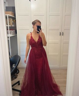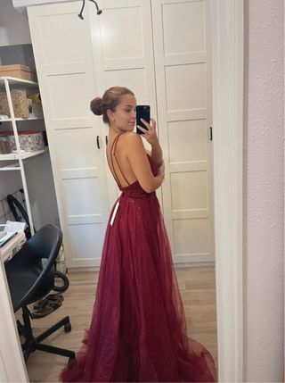 Vestido de fiesta rojo vino