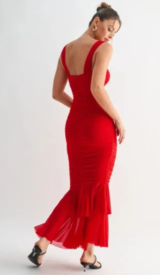 Vestido de fiesta rojo con volantes