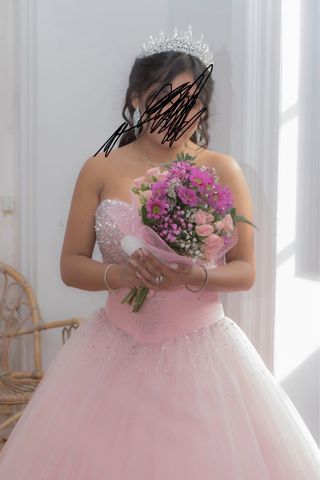 Vestido Fiesta 15 Años Rosa y Plateado