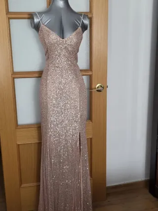 Vestido fiesta lentejuelas rosa oro talla L