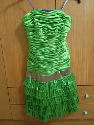Vestido fiesta combinado con falda volantes. Apenas uso
