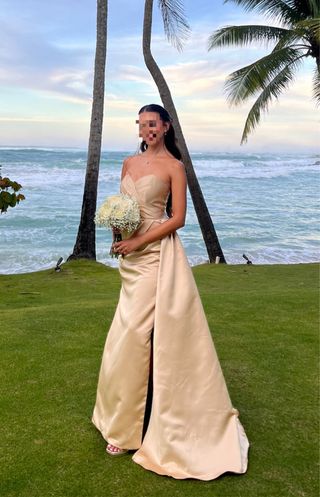 Vestido de fiesta elegante de Rebecca Vallance. - Diseño palabra de honor - Detalle de lazos en el escote. - Abertura lateral en la falda. Costo nuevo 500 euros