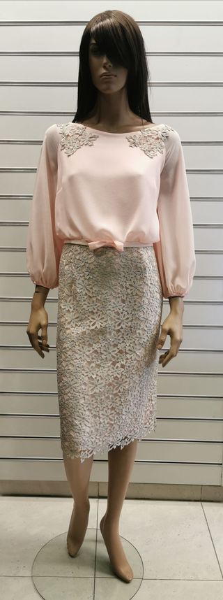 🌷 Elegancia discreta con tejidos y diseño que enamoran Vestido corto por debajo de la rodilla, nuevo y sin estrenar, procedente de tienda. Confeccionado en gasa ligera con escote barco y manga, aporta un aire refinado y muy favorecedor. La falda en guipur completa el conjunto con un toque de textura y sofisticación, ideal para celebraciones de día o eventos especiales con estilo. Talla XXXL (46 / 18). Perfecto para madrinas, madres de la novia o invitadas que desean sentirse cómodas, elegantes y seguras en una ocasión única. Precio original: 690 € — pieza de boutique a un precio exclusivo. ¿Te interesa? Escríbeme para más fotos