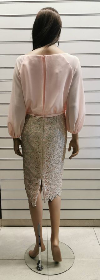 Vestido midi rosa y dorado con encaje