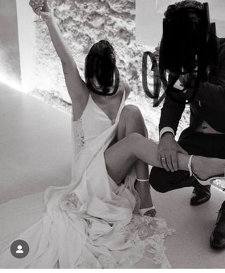 Vestido de novia de la marca Rosa Clará, modelo Dirma. Un diseño elegante y romántico. - Cuerpo de encaje con escote en V. - Cintura marcada con detalles. - Falda de tul vaporosa. - Espalda con diseño abierto y detalles de pedrería. Temporada 2024. Corte princesa, estilo romántico. Falda con plumeti incluye Velo capa, se puede quitar y cambiar por otro estilo ya que va con unos automáticos a los hombros. Peso: 68kg Altura: 1,70cm No se cortó largo del vestido ya que con la altura de los tacones (4cms aprox) quedaba perfecto.