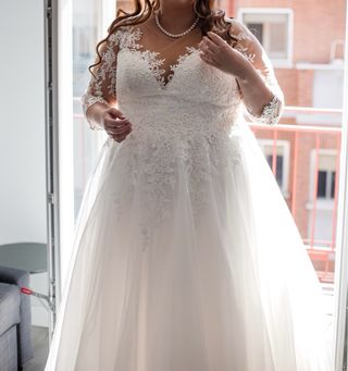 Vestido de Novia talla L/XL Encaje Manga 3/4