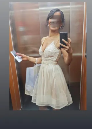 Vestido corto novia civil beige/blanco