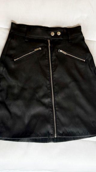 Falda corta negra efecto piel con cremallera lateral plateada. Sienta muy bien y está totalmente nueva.