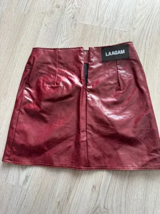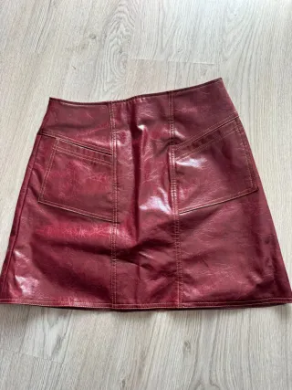 Falda de piel de color rojo oscuro ,Su diseño es elegante y moderno. Está nueva - Material: Piel. - Color: Rojo oscuro no luminoso La talla corresponde a un 38/40,