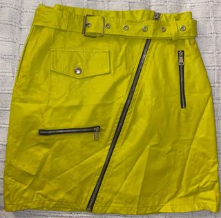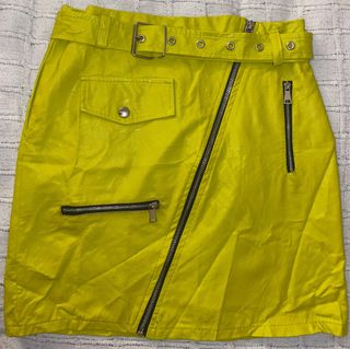 Falda amarilla corta efecto piel cremalleras