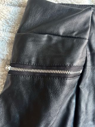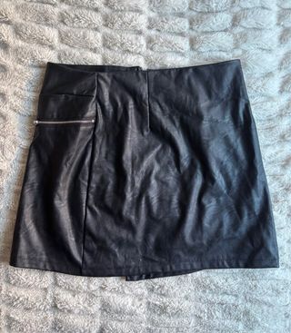 Minifalda de efecto piel con detalles de cremallera. - Diseño moderno. - Cremallera decorativa en el bolsillo lateral. - Talla XL ( ver medidas). Recoger en zona de Congosto en Villa de Vallecas. Hago envíos