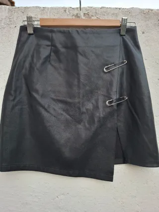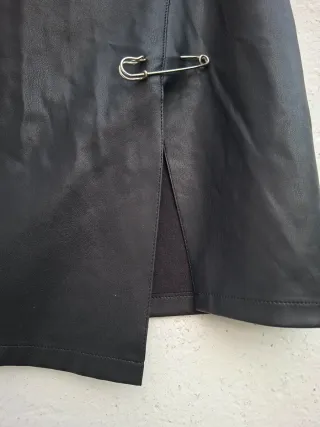 Minifalda de piel sintética con un diseño moderno y detalles únicos. - Cierre con imperdibles plateados. - Abertura lateral. - Material: Piel sintética.