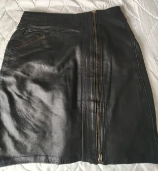 Producto nuevo, con etiqueta y sin usar. Falda de piel genuina con cremallera y dos bolsillos delanteros.