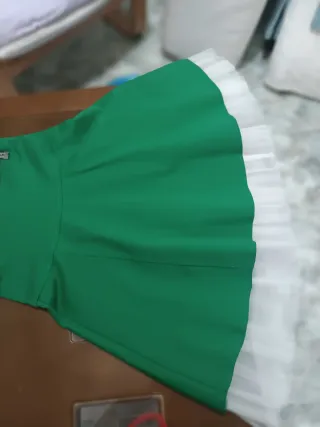 Falda con un diseño moderno y elegante. - Capa superior de color verde. - Detalle de tul blanco en la parte inferior.