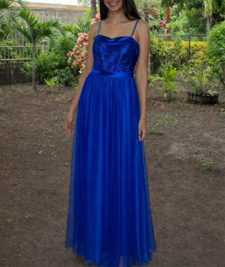 Vestido largo azul tul