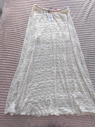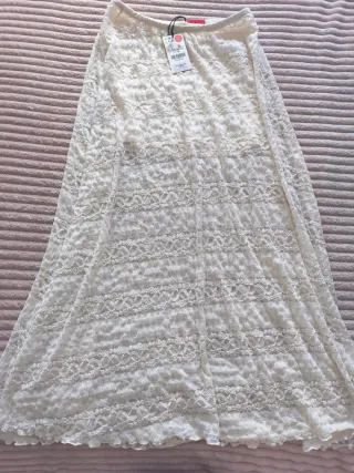 OFERTA 3X2 -> Compra 3 productos y te regalo el de menor importe. Falda con tejido de tul con motivos calados. Largo hasta los tobillos. Cintura elástica. Forro interior. Sin estrenar, de esta temporada.