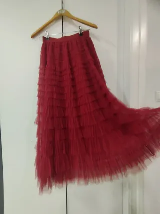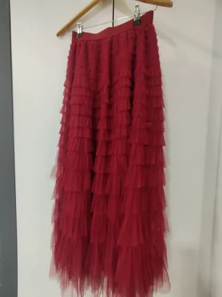 Falda larga de tul con un diseño de volantes. - Material: Tul - Color: Rojo - Talla: Única