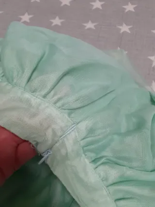 Falda larga de tul en un bonito tono verde/turquesa. Es ligera y con mucho vuelo. - Material: Tul. - Diseño: Falda larga (por debajo de las rodillas) con varias capas de tul. - Cintura elástica.