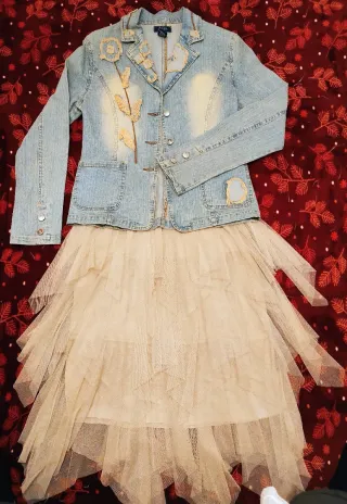 Conjunto de falda larga de tul y top adornado con flores. Puesto para una boda, una sola vez. - Top con cremallera por detrás. - Falda con goma elástica - De dos colores, la misma talla S - Precio unitario.