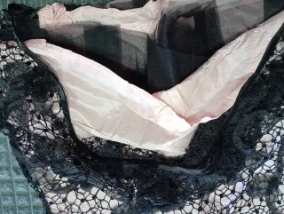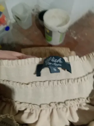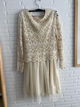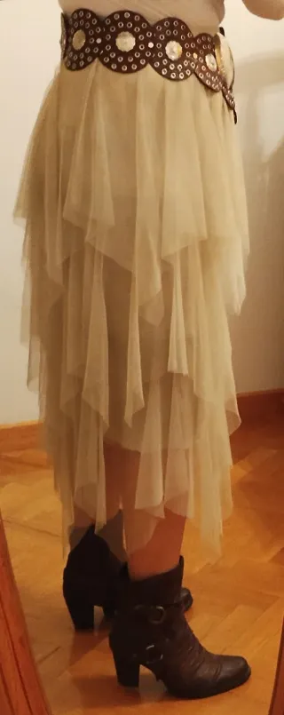 Enagua de tul con varias capas para dar volumen a faldas o vestidos. - Largo: entre 95 y 100 cm. - Talla: M (equivalente a 38 / 10). - Color: beige y blanco.