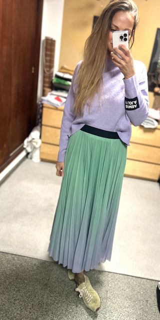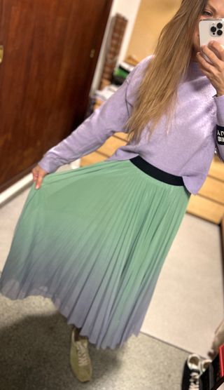 Maxifalda/falda larga de tul en colores verde y lila, efecto degradados de BIMBA Y LOLA. Da mucha posibilidades de combinarla…hecho muchas fotos🥰 Con cintura elástica con letras ”Bimba y Lola“. El tul es súper suave y la falda tiene una caída muy bonita. Yo mido 1.70….para que tienes una idea del largo ;) Talla 40 (yo la veo ideal para una M/L) Nuevo, con etiqueta. La etiqueta está un poco arrugada por tener guardarla plegada en una caja. Palma centre #bimbaylola #maxifalda #faldalarga #falda #verde #lila #degradado #cinturaelastica #preciosa #m/l