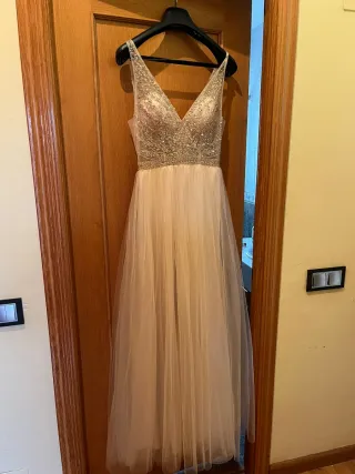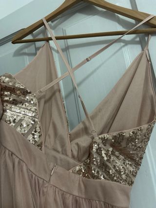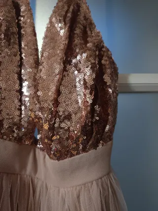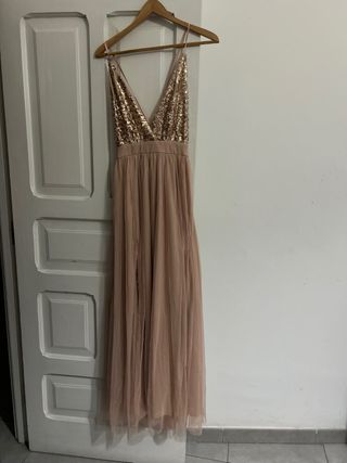 Vestido largo lentejuelas rosa palo y dorado t. M