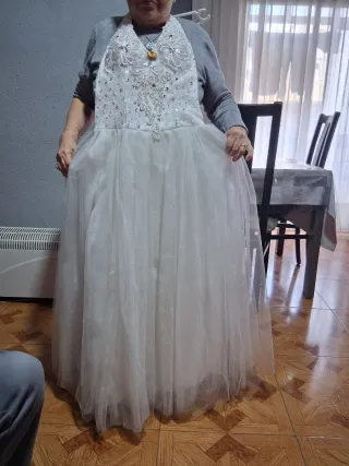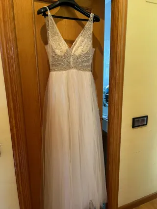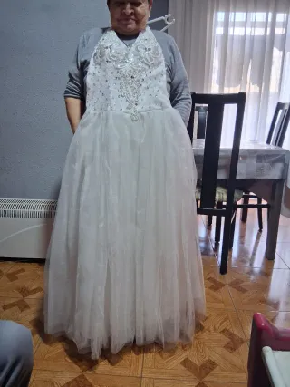Es estupendo como base para llevar encima otras piezas como abrigos o blusas, o customizar a tu gusto con pedrerías o apliques. Va totalmente forrado, se cierra con una cremallera y con botones. La espalda es descubierta y se sujeta con unas tiras finas con un botón en el escote. Ha sido usado para pruebas en probador, es una muestra. +Medidas+++ Contorno de pecho: 88cm Contorno de cintura: 74cm Largo delantero desde cintura: 112cm tul: +10cm Largo de cola desde cintura 145cm tul: +15cm