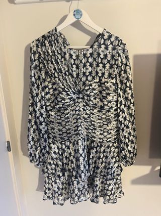 Vestido de manga larga con estampado floral y detalles en tul. Talla etiqueta 42, como pasa mucho veces en Desigual sale pequeño. - Diseño con estampado floral y detalles dorados. - Falda con volantes y estampado de cuadros. - Cintura con trabillas y detalles de botones.
