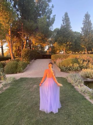Falda larga de tul en tono naranja, ideal para ceremonias o eventos especiales. Su diseño vaporoso y ligero la hace muy elegante. - Tejido de tul. - Diseño plisado en la parte superior.