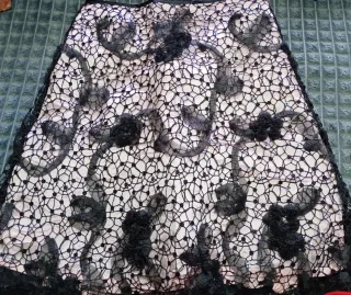 Elegante falda larga de tul negro con delicados bordados plateados. NUEVA SIN ESTRENAR ideal para ocasiones especiales 32.5 cintura y 84 de largo - Diseño con volantes. - Bordados de flores y aves. - Cintura elástica para mayor comodidad.